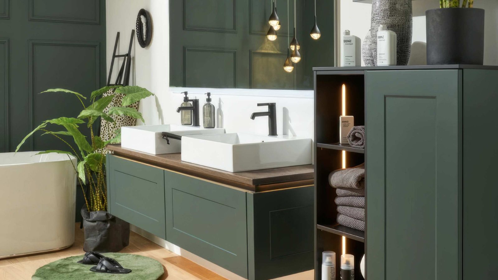 Vanities and storage cabinets custom made to perfect sizes.